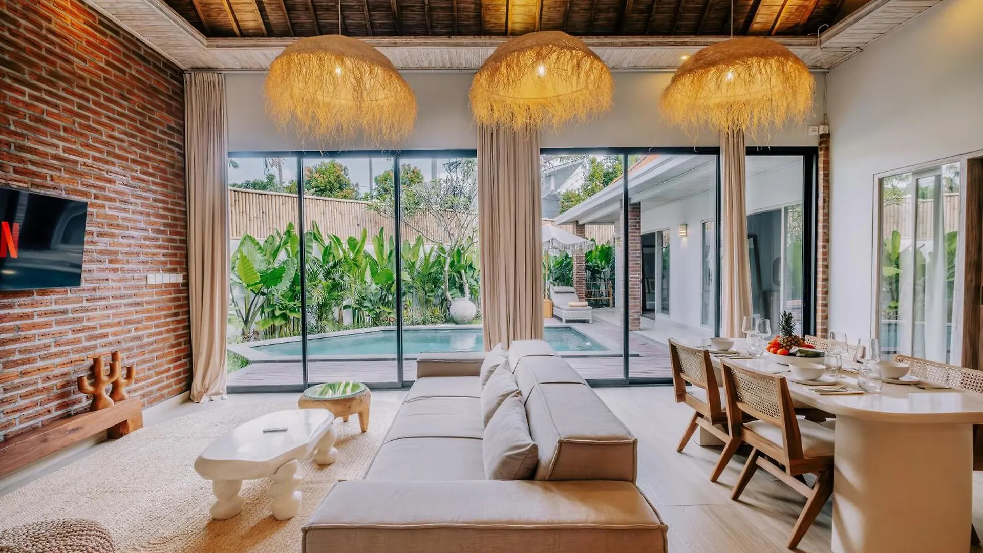 The 4-bedroom Stylish 3Br Villa In Central Berawa Canggu - Near Finns is situated around a 5-minute stroll from Sinar Mart, featuring such comforts as Wi-Fi and a free private parking lot.